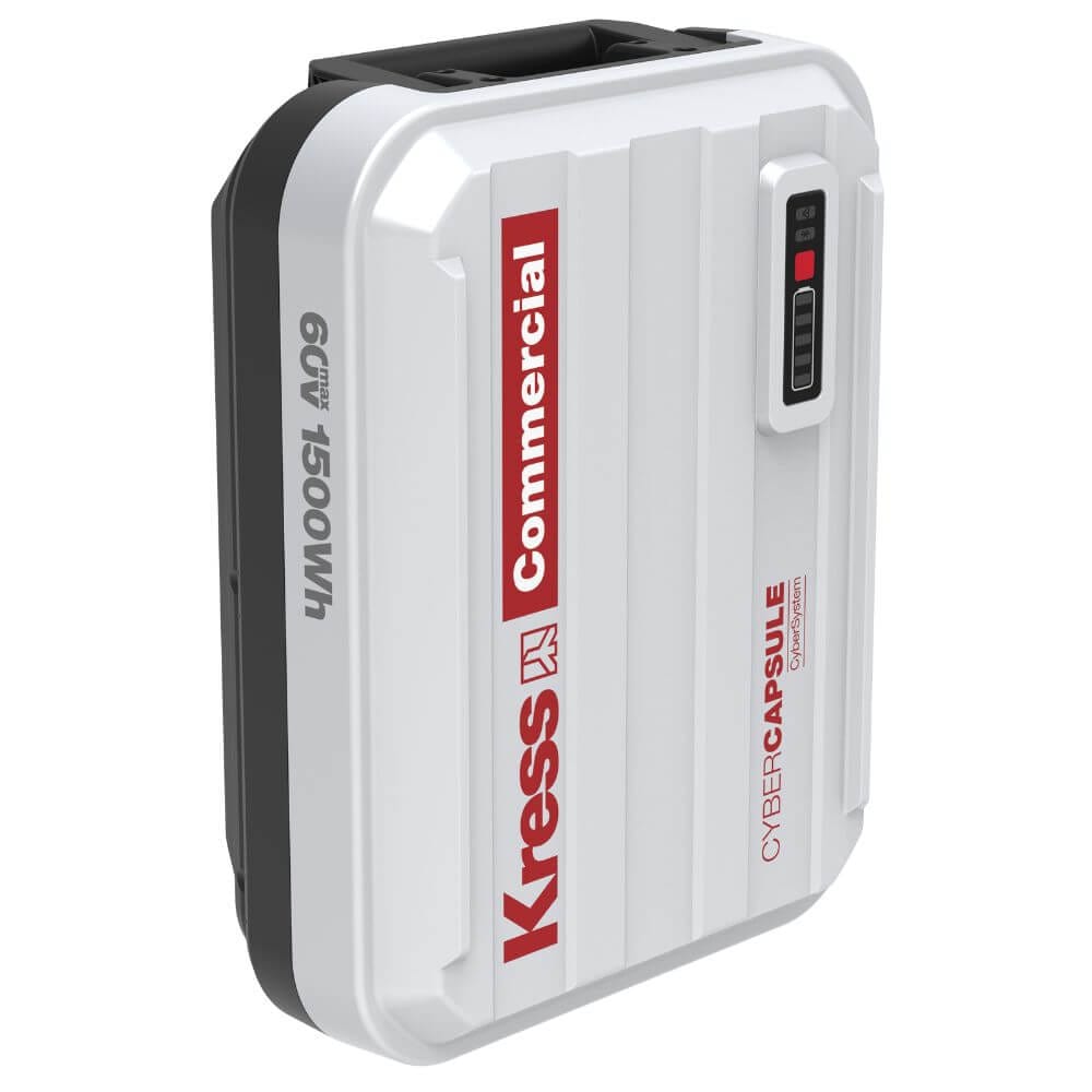 La CyberCapsule da 1,5 kWh fornisce una grande capacità di energia per estendere il tempo operativo degli utensili e dei sistemi di alimentazione portatili, senza dipendere dalle prese di corrente. È pensata specificamente per l’ecosistema Commercial 60 V Kress e permette di regolare la capacità energetica portando più moduli in base alle esigenze della giornata.