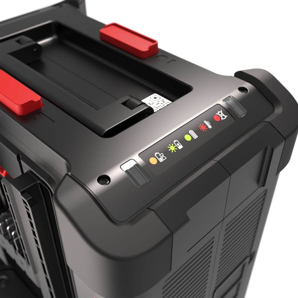 Grazie a due porte di ricarica intelligenti, il CyberPlug è in grado di riconoscere e caricare due batterie 60 V contemporaneamente, riducendo i tempi morti e mantenendo gli utensili pronti all’uso per tutto il giorno.