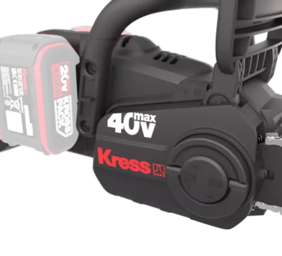 Questa motosega fa parte del sistema Kress 40 V con batterie Lithium-Ion compatibili, che condividono lo stesso standard di alimentazione con altri utensili da giardino Kress, per versatilità e comodità d’uso.
