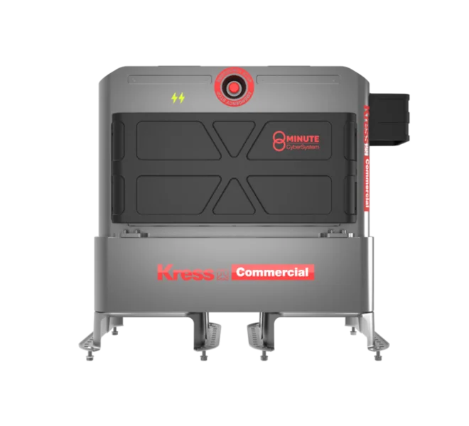 La stazione integra connettività 4G e GPS collegata all’app Kress Commercial, permettendo di monitorare lo stato di carica residua, lo stato operativo e ricevere avvisi di sicurezza e diagnostica in tempo reale, migliorando l’efficienza di gestione delle batterie e delle risorse.